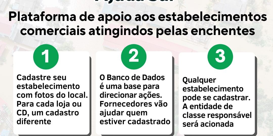 O AJUDA SUL é uma ferramenta para mapear a situação dos estabelecimentos comerciais atingidos pelas chuvas para direcionar as ações de apoio. Faça parte desse cadastro!